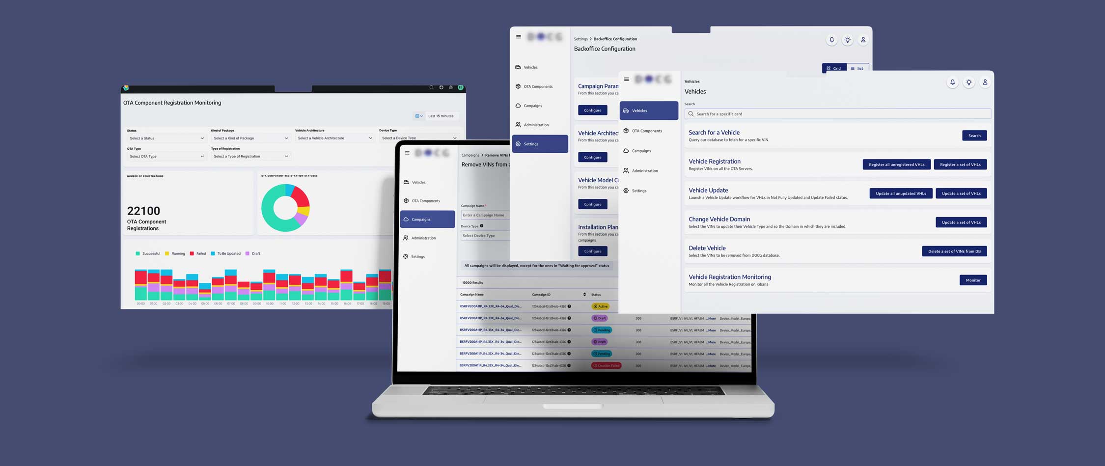 The platform had to integrate business-critical functionalities: vehicle registration from the plant, preparation of customized software packages, industrial-scale OTA campaign management, real-time monitoring, and on-demand service configuration. All of this with differentiated authorization levels for specific user types.